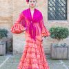 La elasticidad de la tela hace de este traje de flamenca tu mayor aliado en cualquier feria o romería. Junto a nuestros complementos y mantoncillos estarás perfecta.