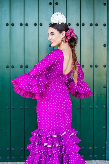 Traje de flamenca Cayetana Buganvilla con lunar blanco