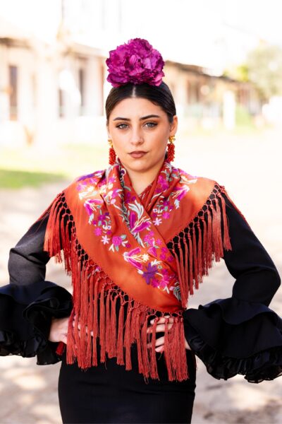 Tiara de flamenca en tonos verdoso, albero y guinda