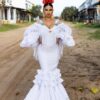 Escote delantero de pico y espalda tradicional. Maxi manga.