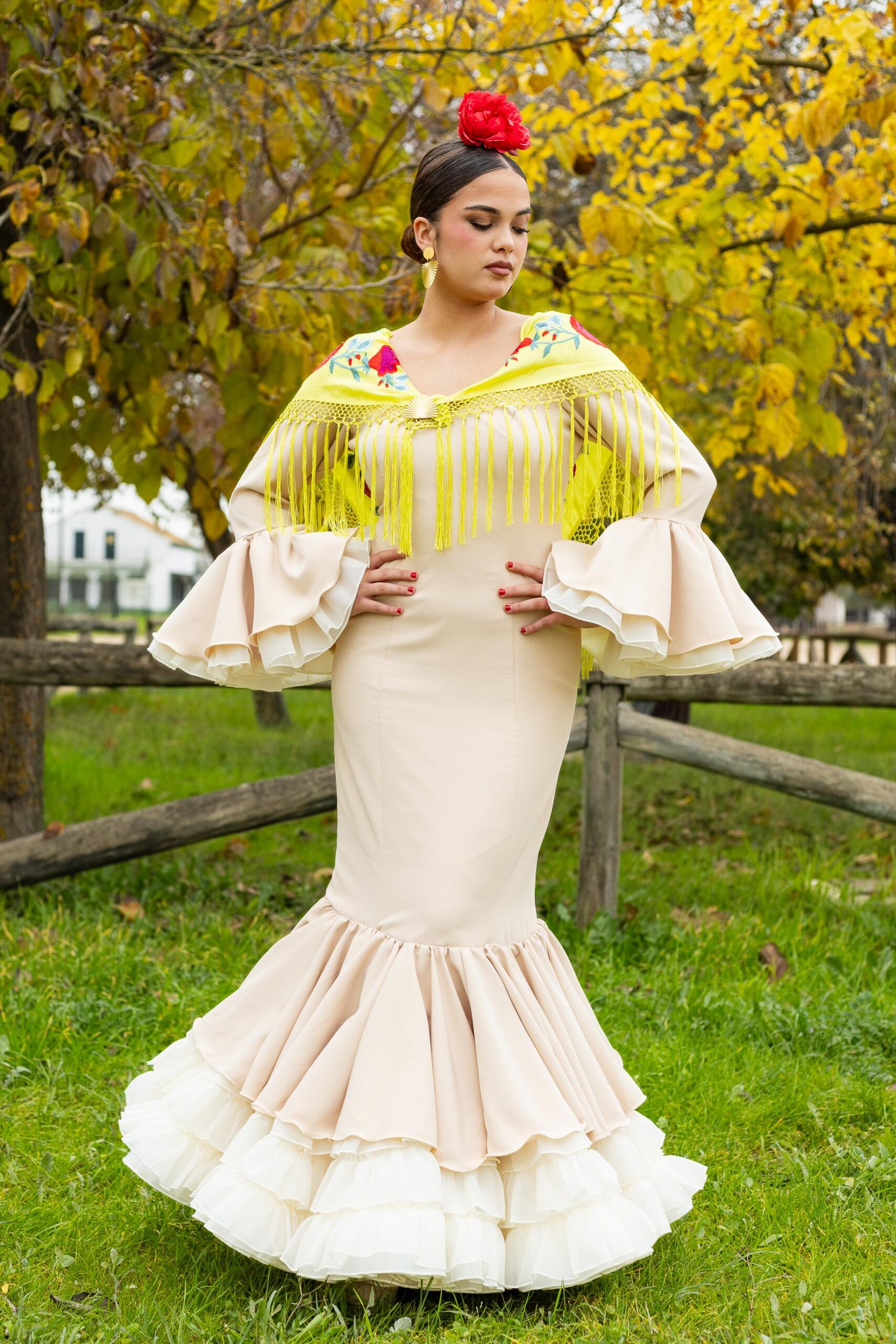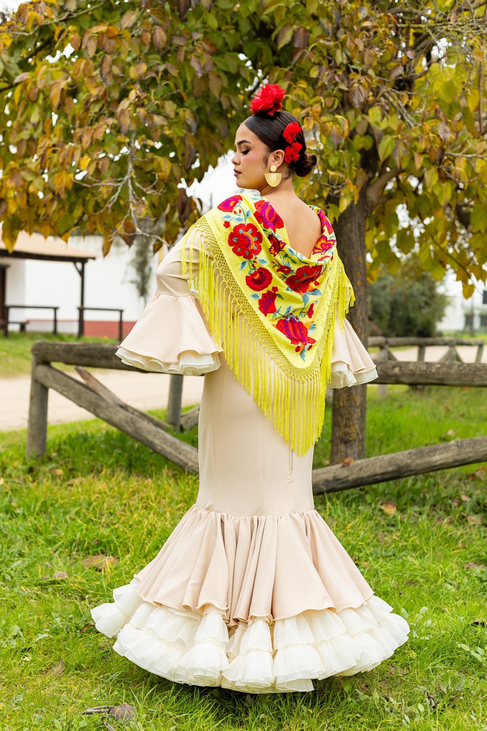 Escote delantero de pico y espalda tradicional. Maxi manga.