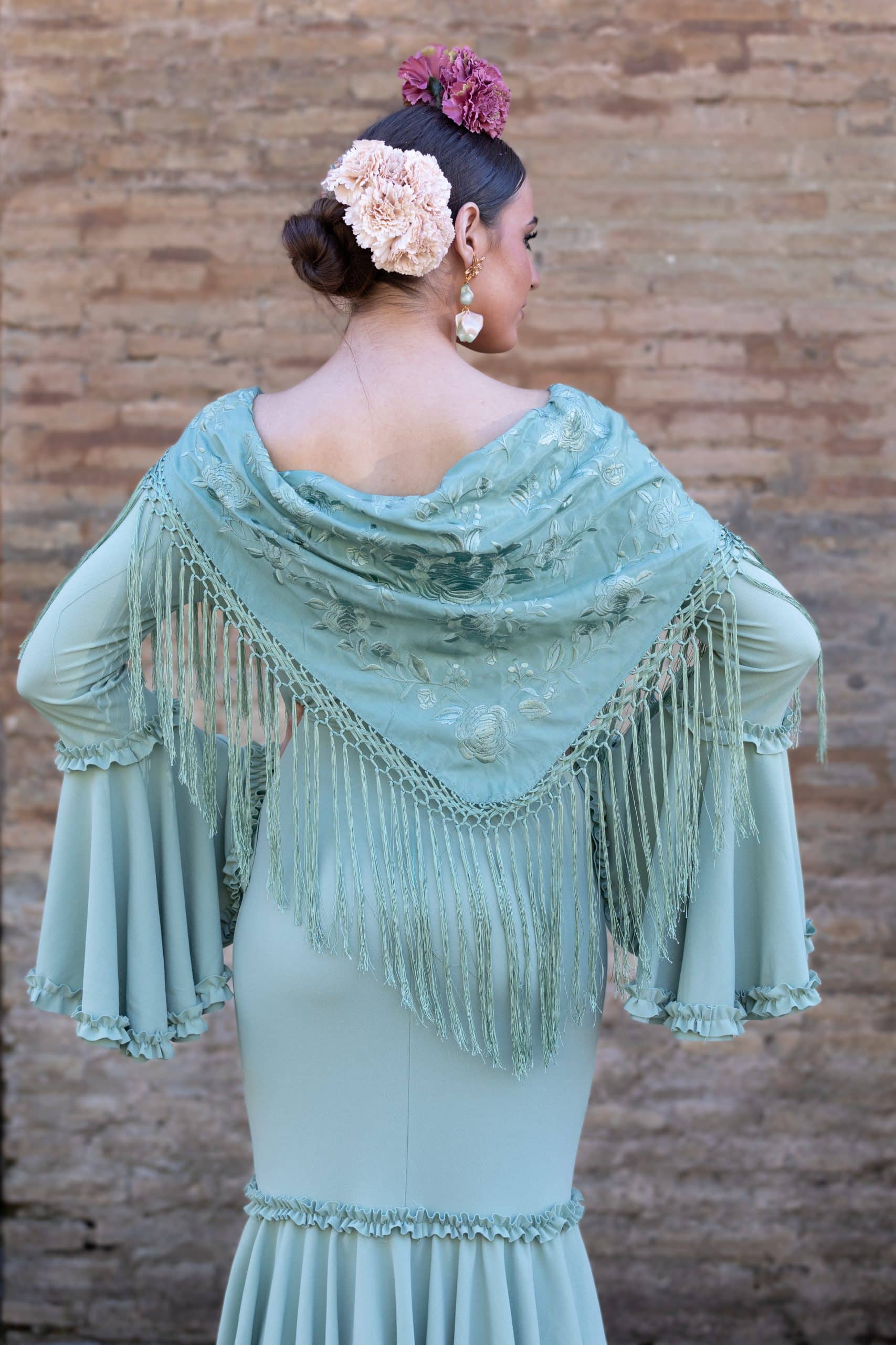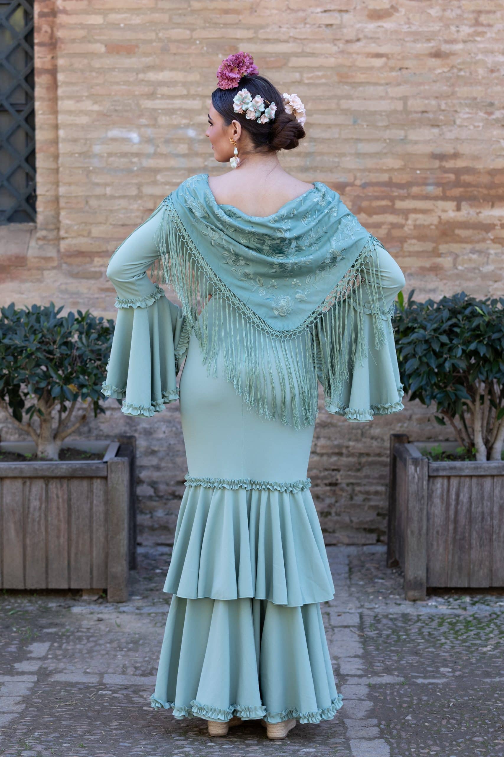 TRAJE DE FLAMENCA LOW COST CANASTERO VERDE JABONOSO