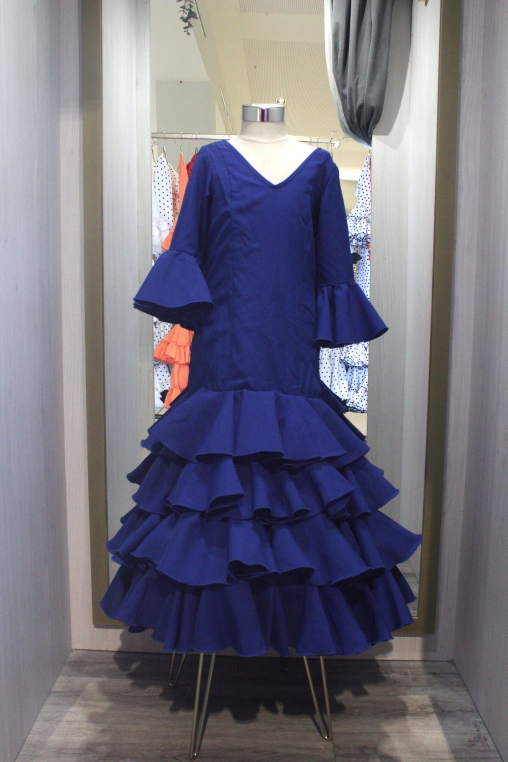 Traje de flamenca niña corto, modelo Marieta, de color azulina.