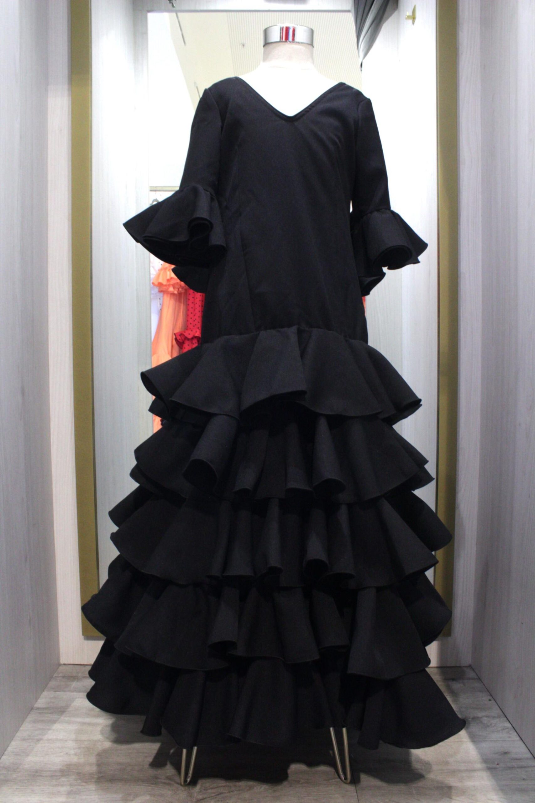 Traje de flamenca niña corto, modelo Marieta, de color negro.