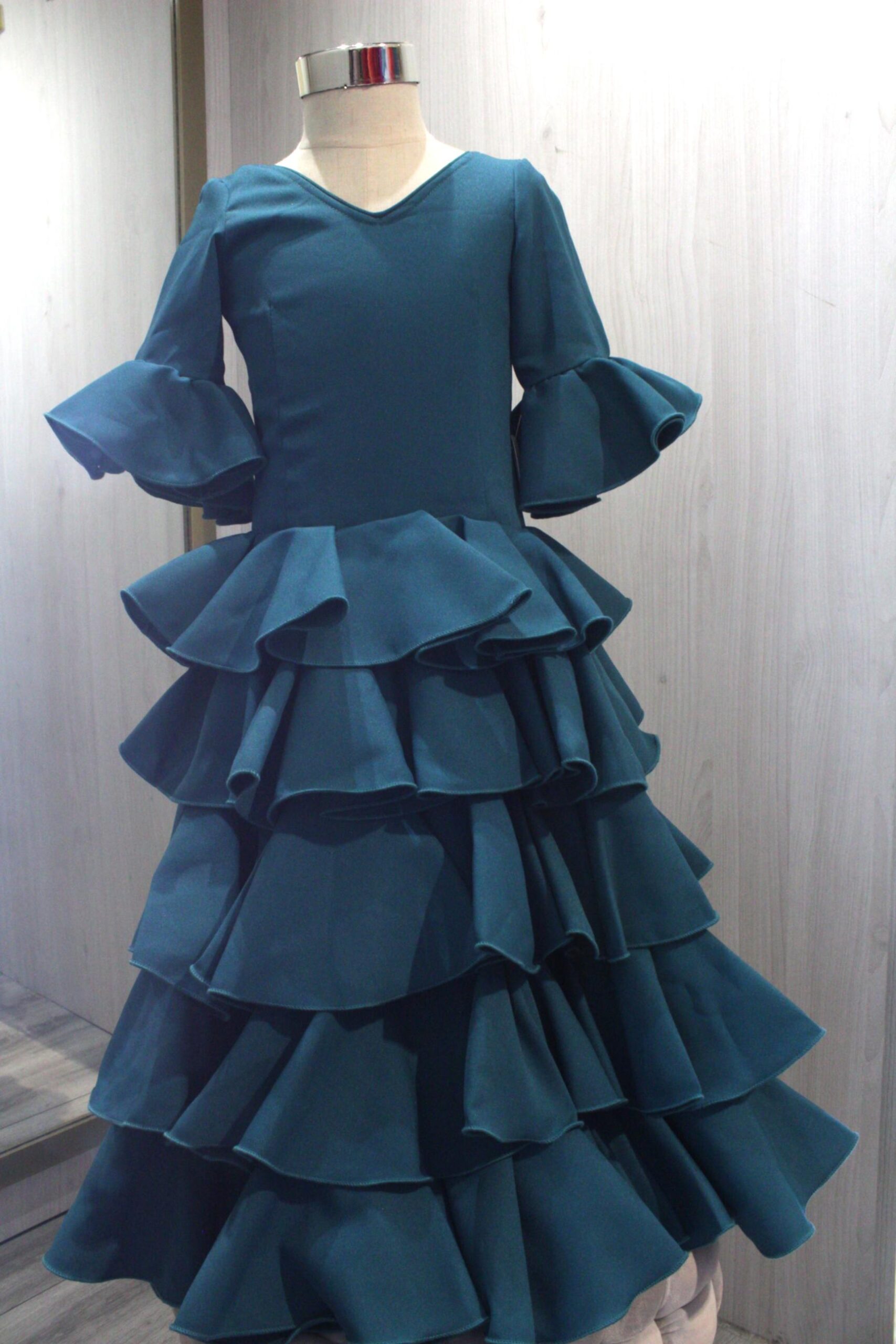 Traje de flamenca niña Marieta Verde Petróleo Claro