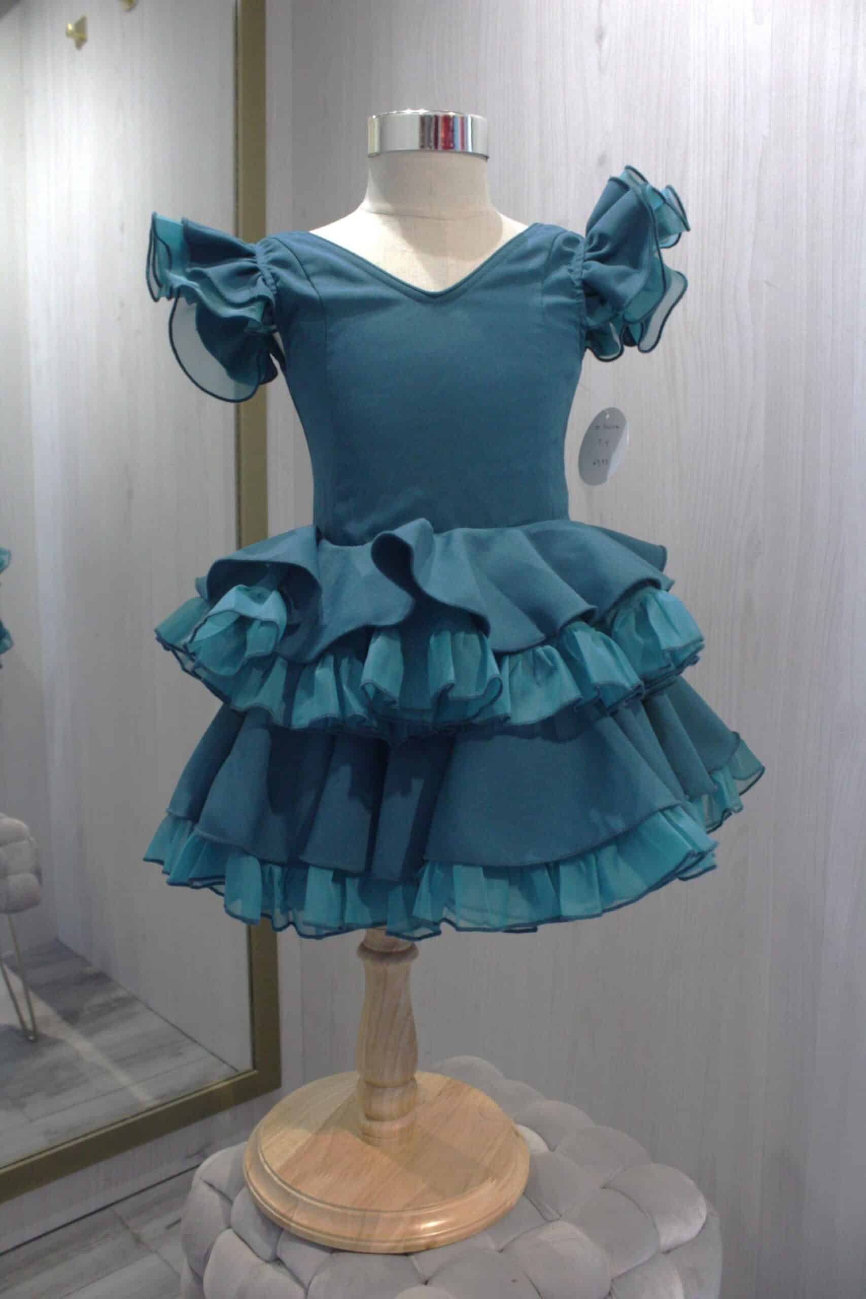 Traje de flamenca niña Triana Verde Agua Oscuro