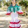 Traje de flamenca de 3 volantes dobles (siendo uno de poliéster y otro de nylon). Media manga
