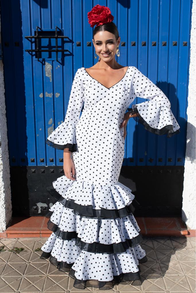 Traje de flamenca Norma Blanco lunar Negro