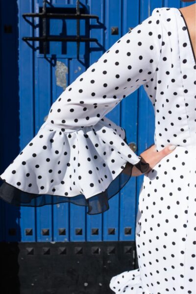 Traje de flamenca blanco con lunares en negro