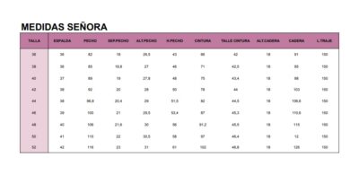 | Talla | 32, 34, 36, 38, 40, 42, 44, 46, 48, 50, 52 |