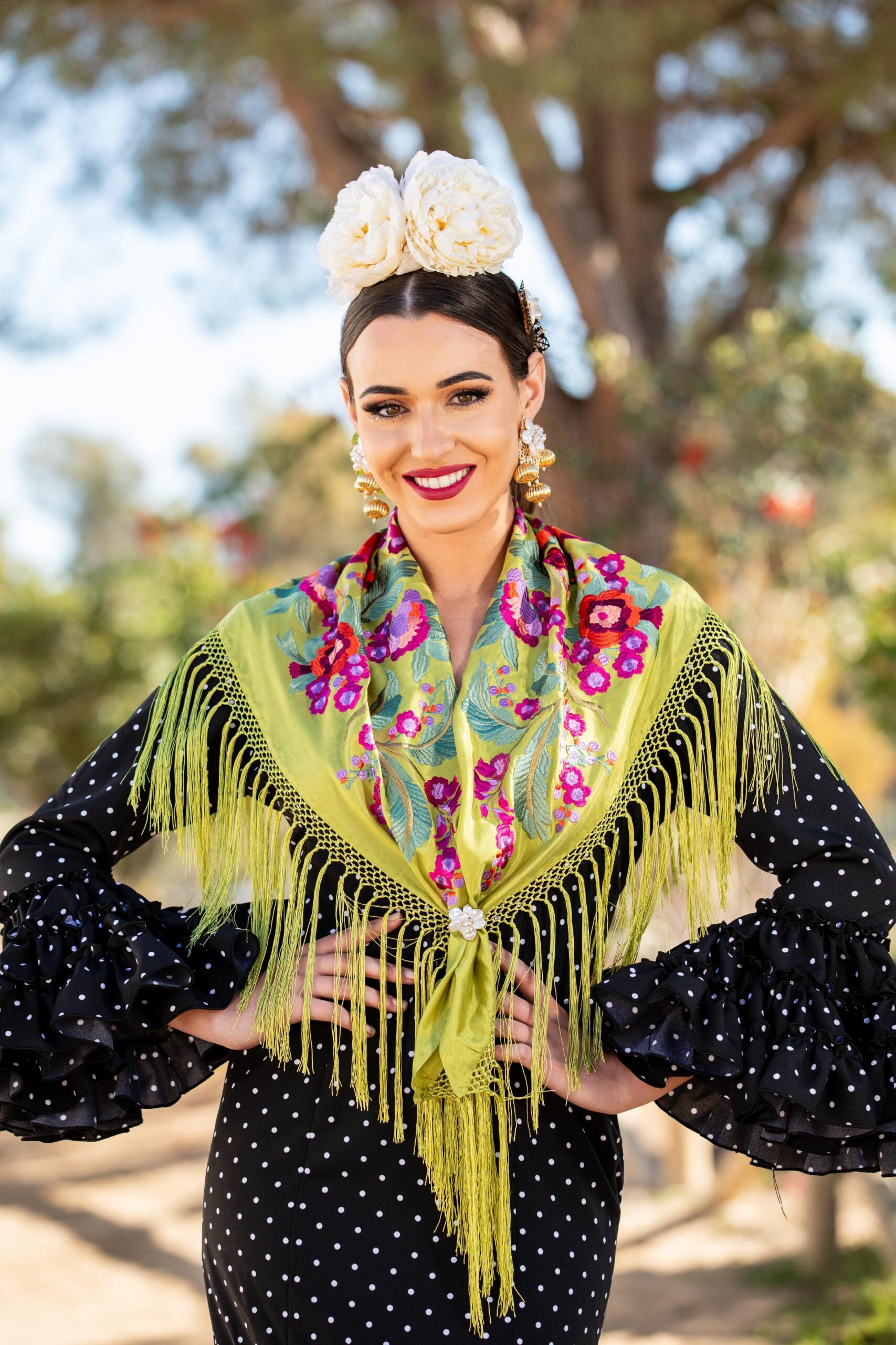 Tiara de flamenca en tonos verdoso, albero y guinda