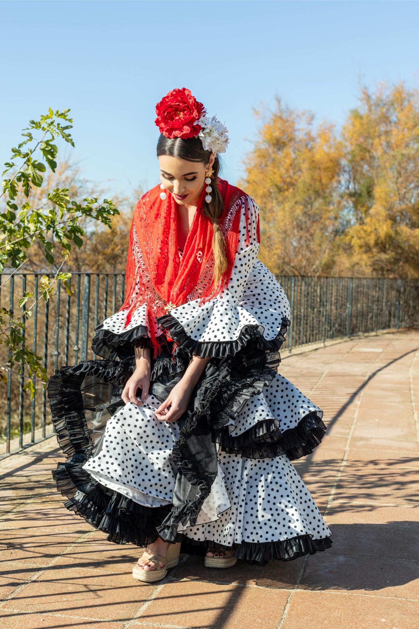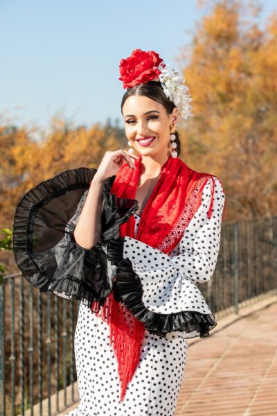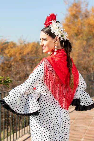 Traje de flamenca Norma Blanco con lunar Rojo